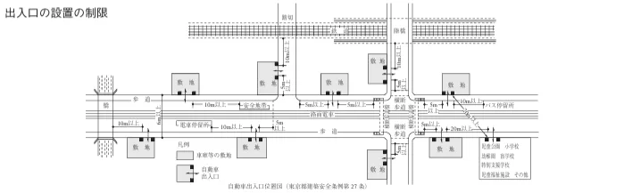 加えて、駐車場出入口に関しては、駐車場出入口は東京都建築安全条例に従う必要があります。